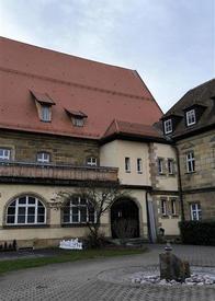 Nach der informativen Präsentation und den persönlichen Gesprächen mit den Patient*innen ging es weiter mit einer Führung durch das 400 Jahre alte Gebäude. Für die Patient*innen gibt es verschiedene Werkstätten, in denen unter anderem mit Holz gearbeitet wird – so besteht zum Beispiel die Möglichkeit, für das Behandlungsangebot „Bogenschießen“ den eigenen Bogen selbst zu bauen. Außerdem wurde uns der Garten des Bezirksklinikums gezeigt, in dem die Patient*innen handwerklich oder gärtnerisch tätig werden können. Ein besonderes Highlight war außerdem der Therapiehund Theo, den unsere Kolleg*innen kennenlernen durften.