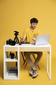Es ist schwierig meine täglichen Aufgaben kurz zu fassen, weiles wirklich jeden Tag etwas anderes ist. Wir haben unterschiedliche Abteilungen, in denen wir im 6-monatigen Wechsel eingesetzt sind, wie Internetfotografie, Möbel, on Location, Mode, Schuhe und Taschen. Dies Aufgaben sind ultra vielfältig. Ich habe auch keine Lieblingsabteilung, alles hat seinen Reiz. Diese Woche hatten wir den Auftrag, für einen Computerzubehörhersteller Fotos zu produzieren. Hierfür wurden im Studio zwei Räume, z. B. einen Gamingkeller, gebaut und es kamen zwei Models vorbei. Zu einem Fotoshooting gehört nicht nur das Fotografieren, denn man muss zum einen auch die Bilder benennen und auf die richtige Belichtung achten, sodass das Produkt gut herauskommt. Man steht auch mit den Kund*innen im Austausch um zu klären, ob alles nach ihren Vorstellungen umgesetzt wird. Wir machen auch Intranetportraits und generell Projekte für die BAUR-Gruppe, wie Videodrehs für die Lernplattform. So ein Videodreh ist mit viel Aufwand verbunden. Man muss sein Equipment kennen, zu anderen Locations fahren und sich im Vorfeld ein Konzept zu dem Auftrag erstellen.