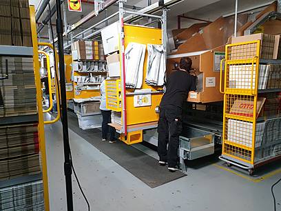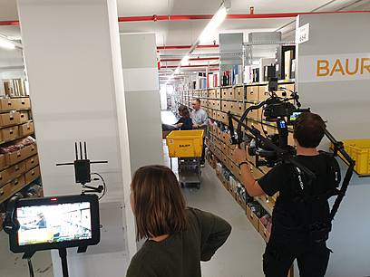 Wir haben einige verschiedene Szenen gedreht. Zum einen Interviewszenen, in denen wir den Mitarbeiter oder der Mitarbeiterin Fragen gestellt haben, auf die sie spontan antworten sollten. Jeder einzelne von ihnen hat seine Aufgabe wirklich toll gemacht, sodass sie vor der Kamera absolut souverän waren. Zum anderen verschiedene Arbeitsplatzszenen, in denen sie einfach ihrer normalen Arbeit nachgegangen sind und wir unterschiedliche Schritte mit der Kamera eingefangen haben. Oder auch Füllaufnahmen um das Video im Nachhinein gut schneiden zu können. Zum Beispiel haben wir den Weg eines Pakets in der Logistik abgefilmt sowie einzelne Maschinen. Diese dienen dazu, die Filme dynamisch und flüssig wirken zu lassen.