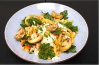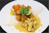 50 % des Geflügels ersetzt ihr durch knusprige Yellow Lentil(Linsen)Balls. Die veganen Knusperbällchen sind ein Linsen-Protein-Lieferant mit besserer CO2 Bilanz ggü. Fleisch und schaffen kulinarischen Mehrwert.