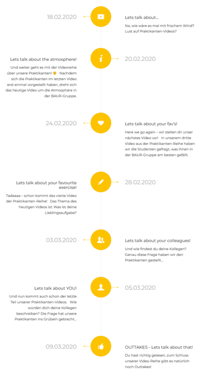 Michaela: Nein! Die Praktikanten waren in ihren Erzählungen vollkommen frei und hatten keinerlei Vorgaben. Wir haben ihnen vorher lediglich die Fragen zukommen lassen, damit sie sich bereits im Vorfeld überlegen können, was sie sagen möchten. Wir wollten es ja schließlich authentisch haben, also musste es auch ehrlich sein und ohne vorgegebene Phrasen.